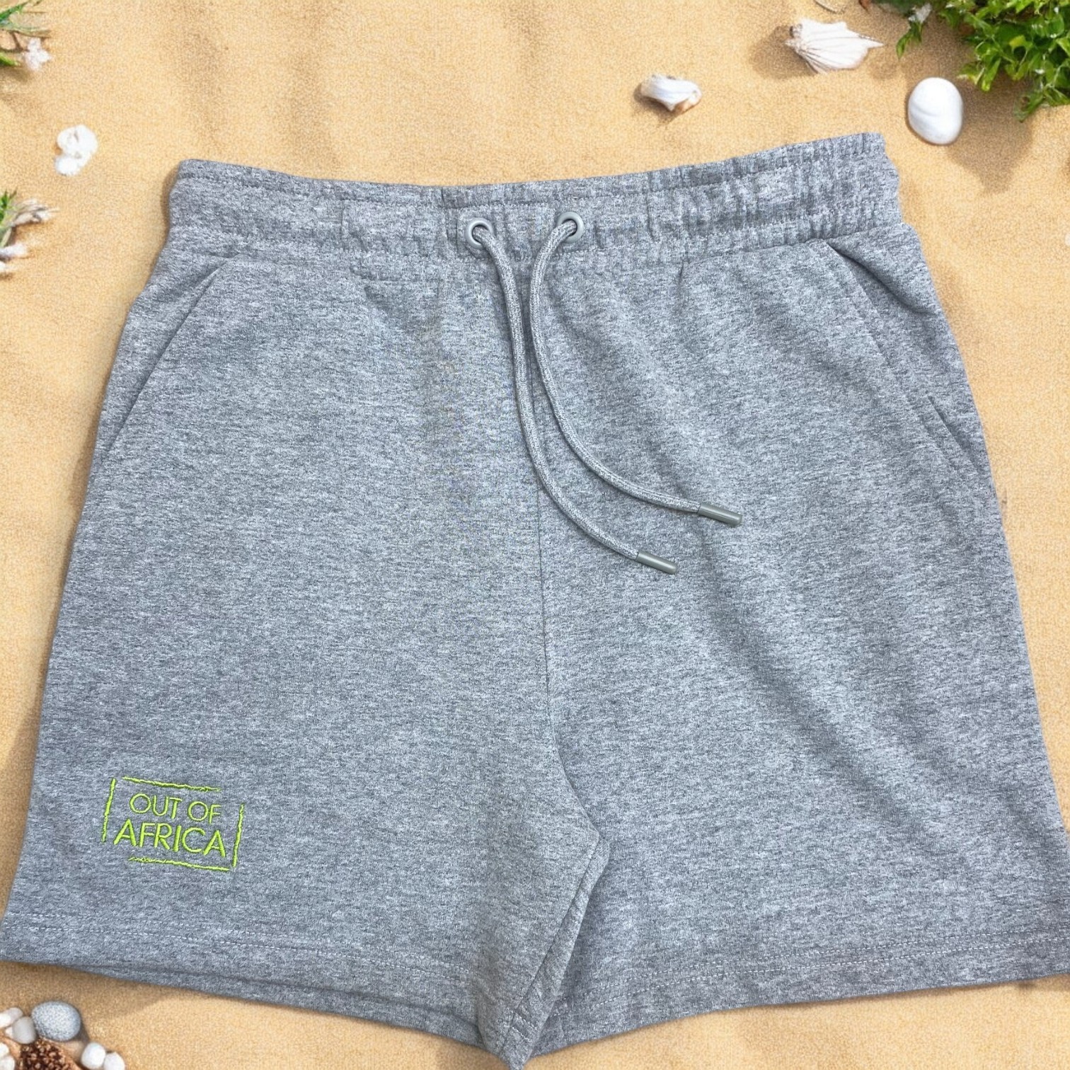 Comfortable sustainable fashion sweat shorts embroidered with Assegai’s own Out Of Africa brand logo.
